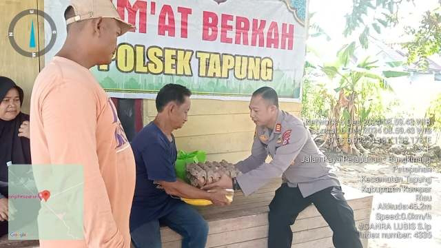 Kegiatan rutin Jum’at Barokah Polsek Tapung dengan membagikan sembako kepada warga kurang mampu di desa Petapahan pagi ini dipimpin Kapolsek Tapung AKP Nur Syafniati SH, yang di wakili Wakapolsek Tapung AKP Ferry M Fadillah SH, di dampingi Ps Panit 1 Binmas IPDA Denny Marwito Tambun, PS Kanit Propam AIPTU Zulfahmi, Banit Intelkam AIPDA Candra Lubis S.ip.